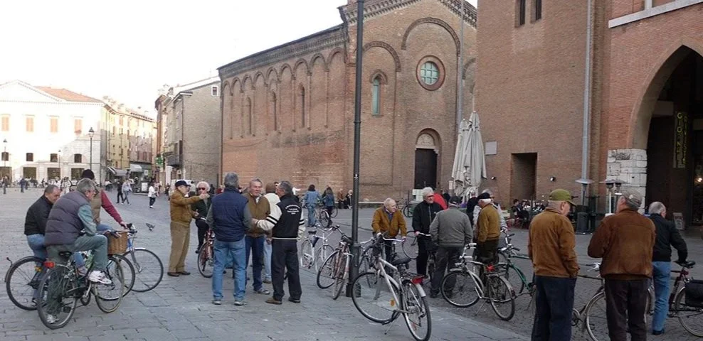 Men gather in Ferrara, Italy. Photo: Steve Price
